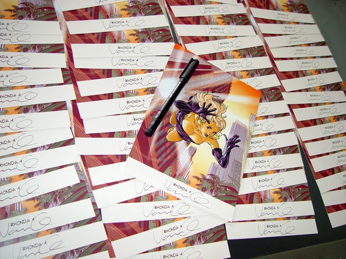 En hoewel vooral Hans het waarschijnlijk heel druk gaat krijgen met alleen al die vier verschillende edities van 'Help me Rhonda!' gaan we toch proberen om ook al die andere albums, prenten, kaarten etc te voorzien een tekening, tekst en handtekening voor iedereen die dat maar wil. Kortom, het wordt groot feest aanstaand weekend tijdens het Stripfestival Breda en we hopen jullie dan ook allemaal aanstaande zaterdag en/of zondag te mogen begroeten. Tot ziens in Breda!